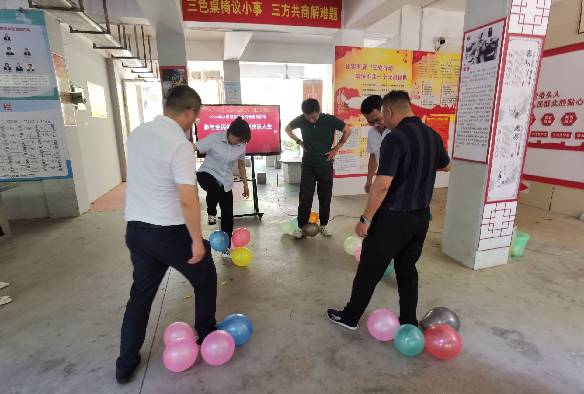 本网讯(通讯员 罗慧敏)为鼓励和引导广大居民积极参加体育健身活动,养成良好的体育锻炼习惯,营造全民健身氛围。在8月8日全民健身日当天,水云间社区组织辖区康民物业、居民开展了一场以“开展全民健身 畅享快乐人生”为主题的活动。