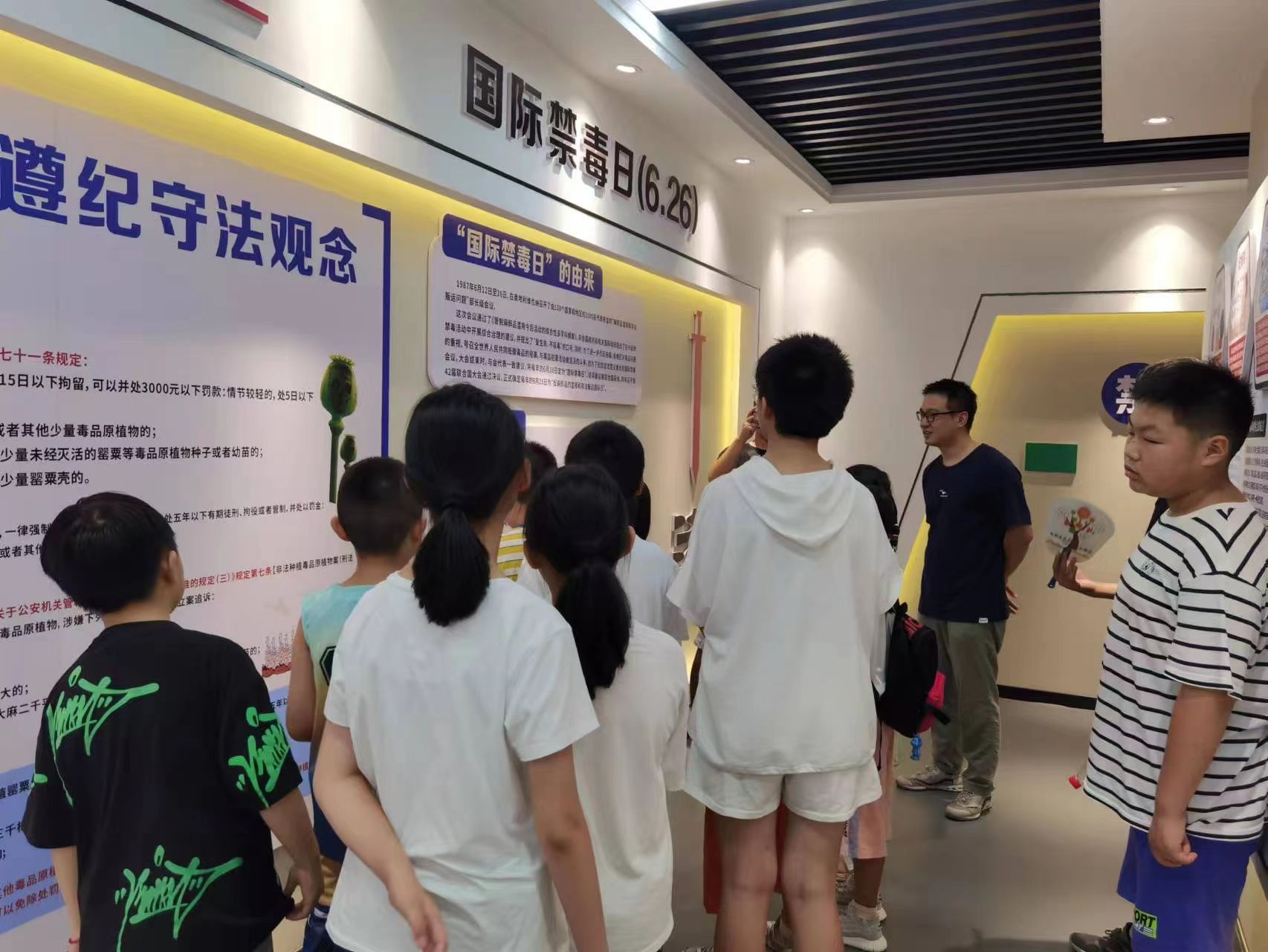 社区利用暑假,将辖区的孩子们组织在一起,参观社区禁毒中心,了解我国禁毒史;观摩新型毒品,直观地了解毒品的种类及特点;模拟“吸毒后的你”进一步感受吸毒带来的可怕后果,打好涉毒“预防针”,让孩子们对毒品形成足够的“免疫力”。