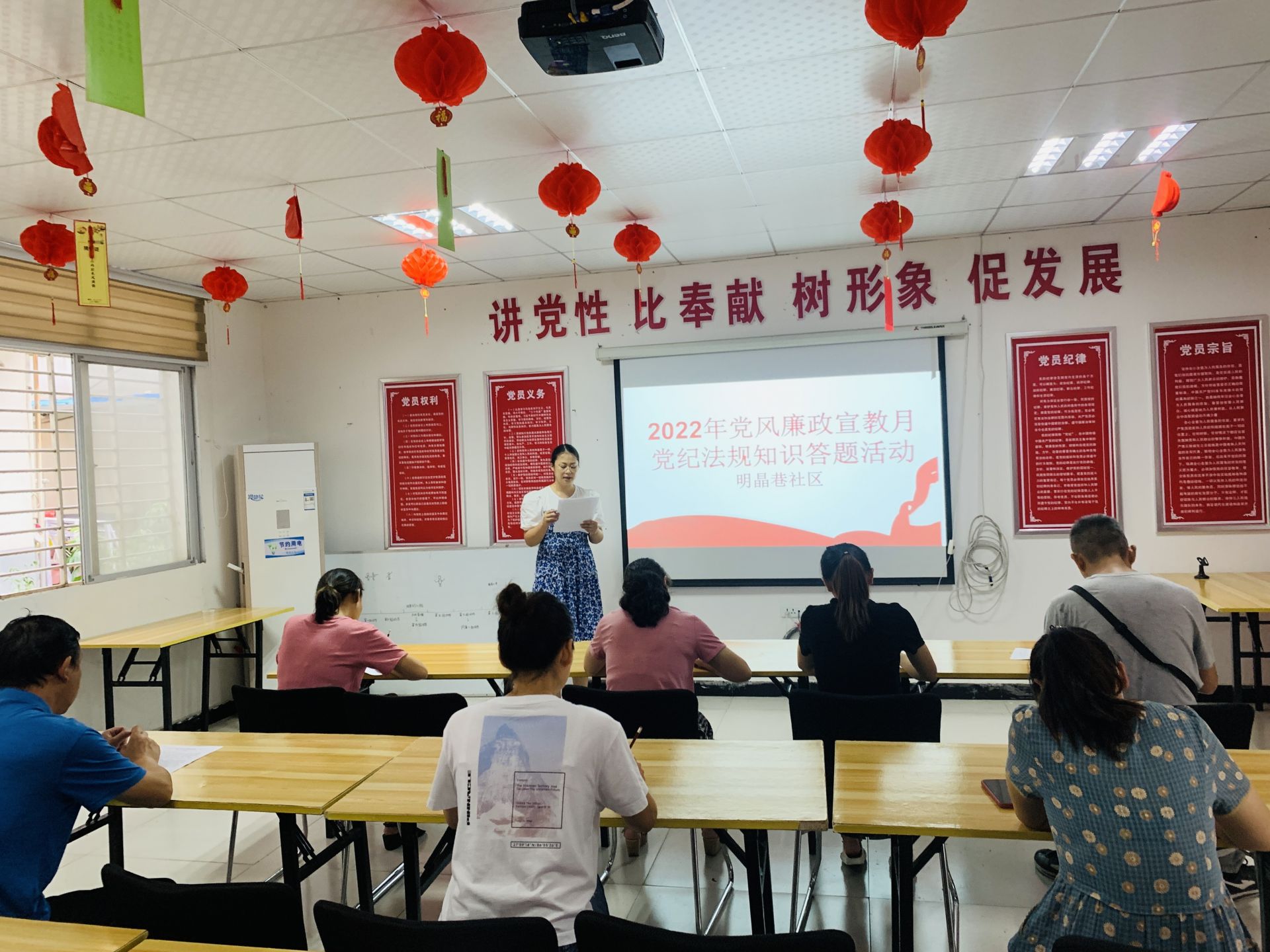 本网讯(通讯员 刘静)8月16日上午,明晶巷社区在党员活动室举办了党风廉政知识问卷答题活动,进一步增强了辖区党员干部党性观念,积极营造良好的学习氛围。