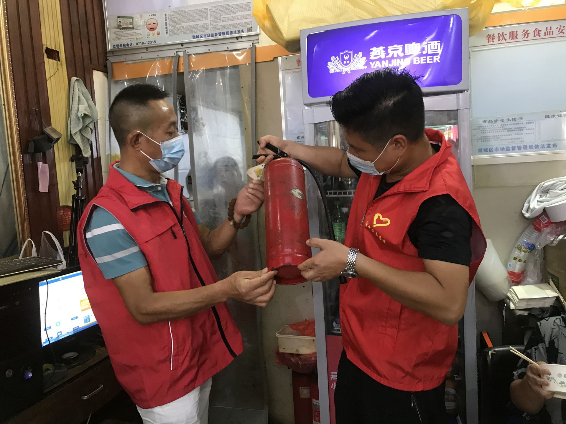 在排查工作中,志愿者对辖区门店进行了专项消防安全检查,并重点检查了消防安全器材配备情况及有无损坏现象。社区工作人员针对检查过程中发现的问题进行了详细记录,对存在的安全隐患及时指出,督促其负责人立即整改,杜绝安全事故的发生。