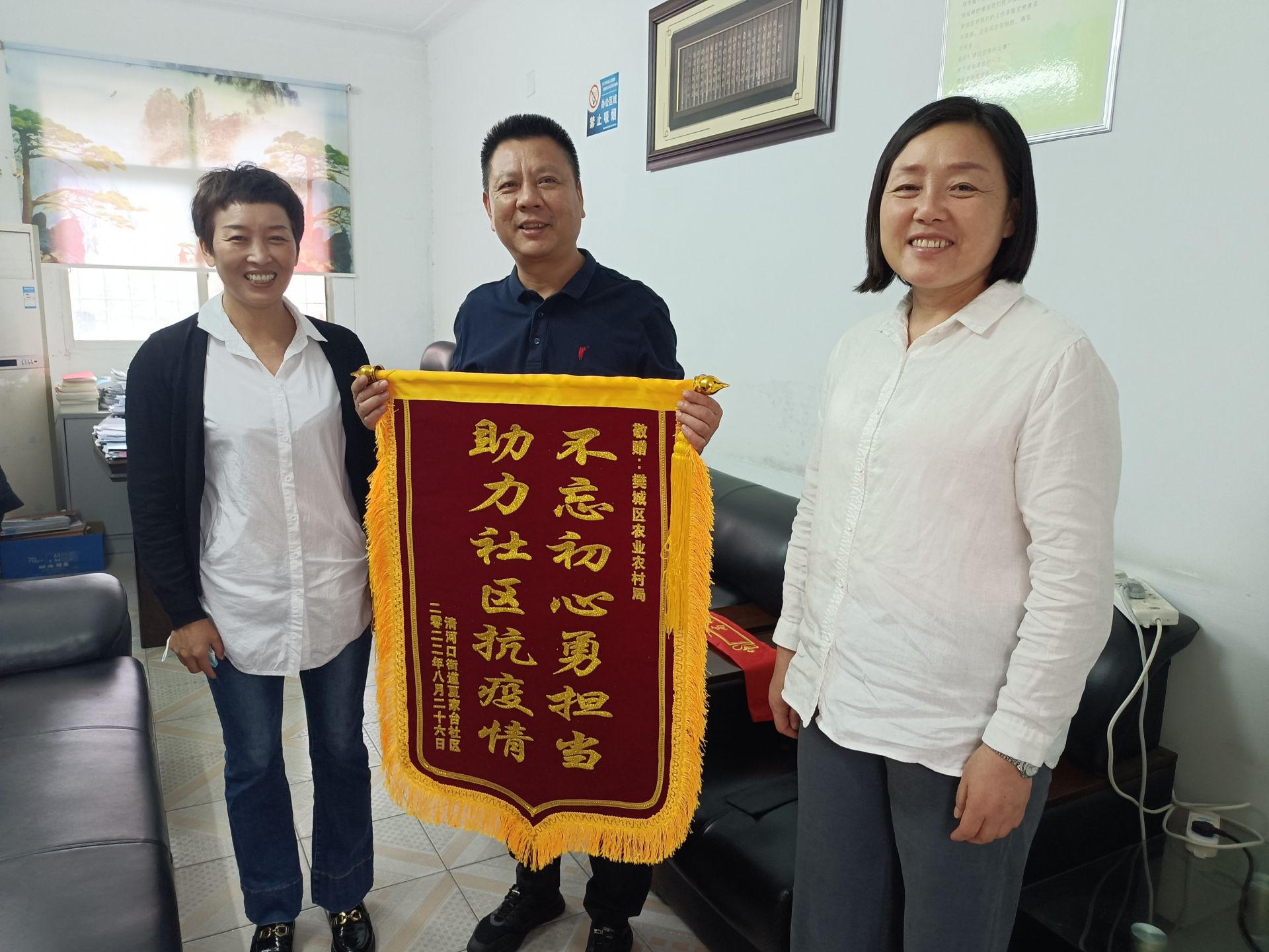 本网讯(通讯员 刘鲜)“不忘初心勇担当,助力社区抗疫情”8月31日上午,樊城区清河口街道夏家台社区党委向樊城区农业农村局送上致谢锦旗,感谢他们能在疫情防控关键时刻逆行而上,与社区并肩作战、携手抗疫,共同筑牢疫情防控安全屏障。