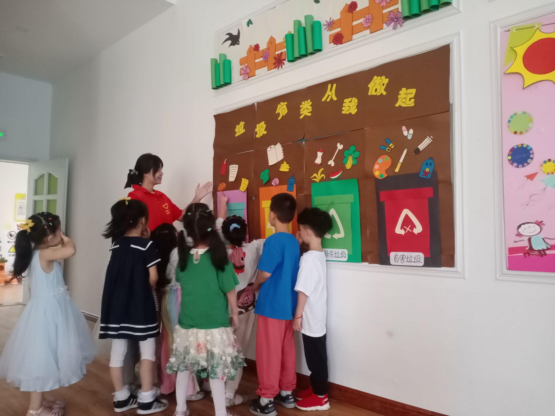 活动现场,垃圾分类宣传指导员运用通俗易懂的语言向孩子们宣传讲解了垃圾分类的目的、意义、分类方式等相关知识,并通过小游戏等互动的形式,对可回收垃圾、厨余垃圾、有害垃圾和其他垃圾的分类及如何投放做了详细阐述和宣讲。同时,让幼儿亲自参与到投放垃圾的活动中,检验自己学习垃圾分类知识的小成果。