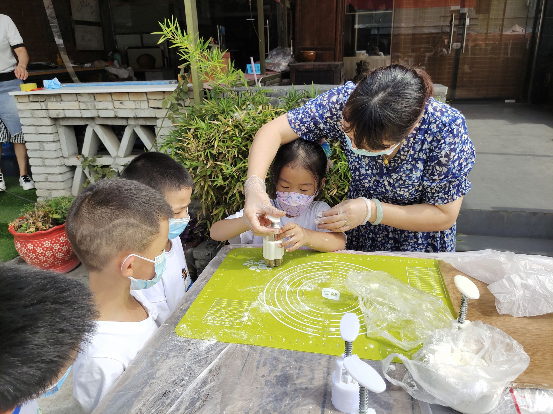 活动现场,志愿者李蕾为小朋友们分享了中秋节的来历和习俗等小知识,细致地讲解和示范月饼的做法,让他们亲自体验揉面、包馅、揉圆压扁、再压模的过程,一块块精致漂亮、口味不同的月饼很快完成,小朋友拿着自己制作的月饼满心欢喜。