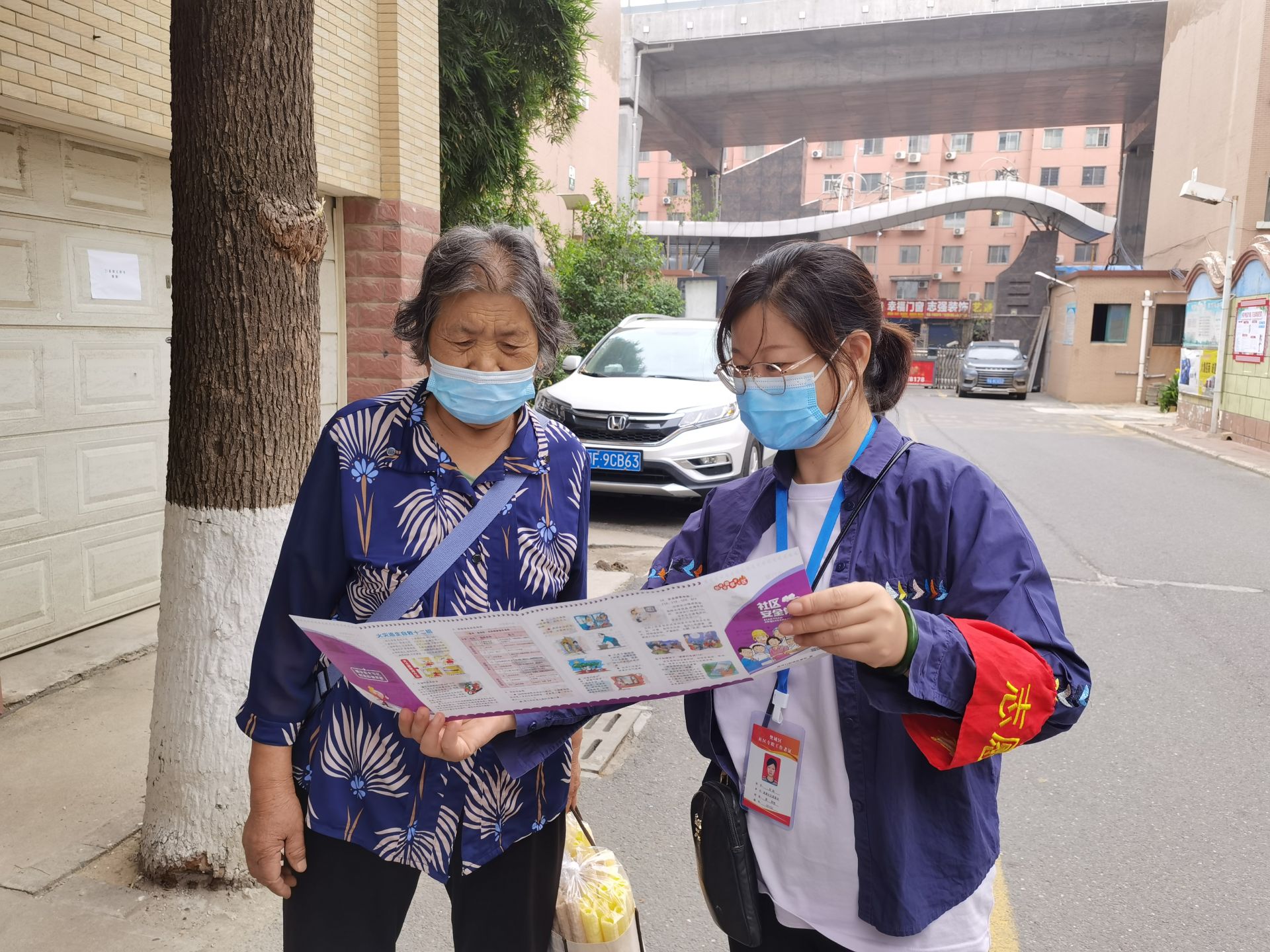 活动现场,志愿者们为居民科普日常生活安全防范知识,发放宣传资料。并且通过真实案例,运用图片资料等为居民们讲解大家身边的消防安全常识。