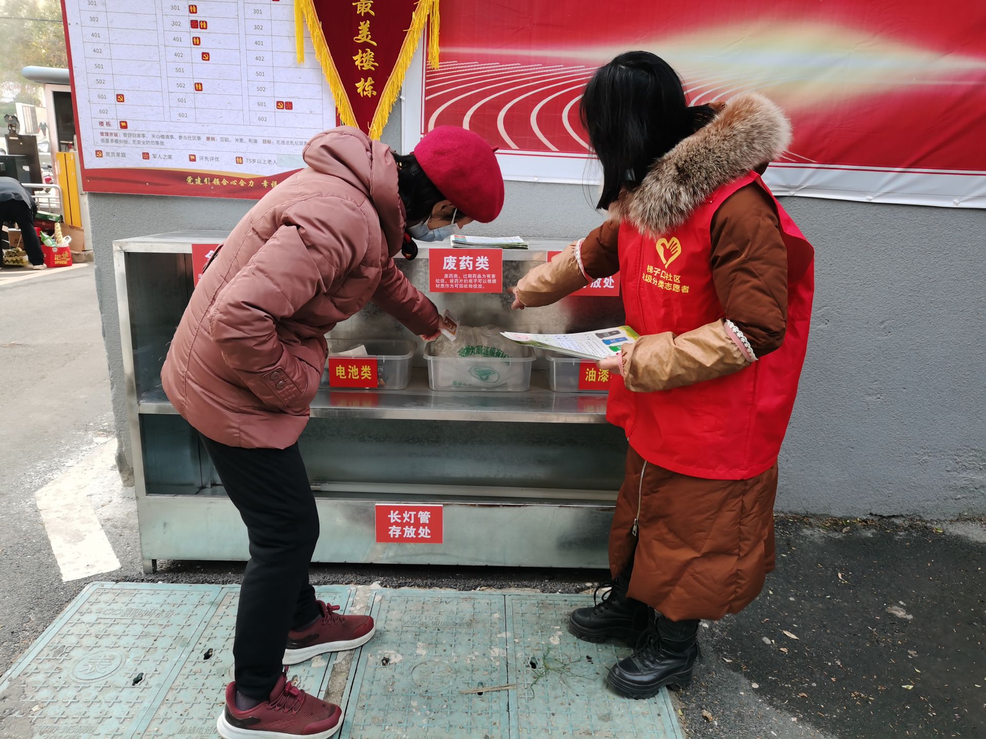 本网讯(通讯员 杨艳)1月18日,梯子口社区组织网格员、党员、志愿者等30余人在辖区百货站小区、陶然居小区、襄遇小区开展以“防治有害垃圾始于心 共建幸福家园践于行”为主题的有害垃圾集中回收日宣传活动,践行“低碳发展绿色生活”理念,增强居民对垃圾分类知识的了解,积极引导居民参与到垃圾分类的行动中来。