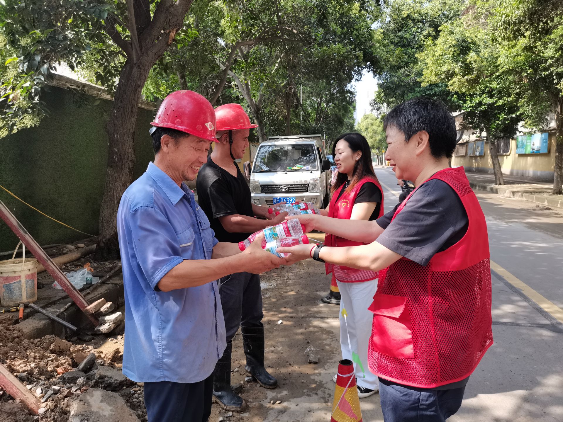 本网讯(通讯员 张玲 张晶)连日高温,酷暑难耐,为了让大家伙儿平安度过这"烧烤模式",7月21日上午,旭东路社区工会开展“夏送清凉”活动,为坚守在高温下的襄阳水务施工人员送去矿泉水和防暑物资。