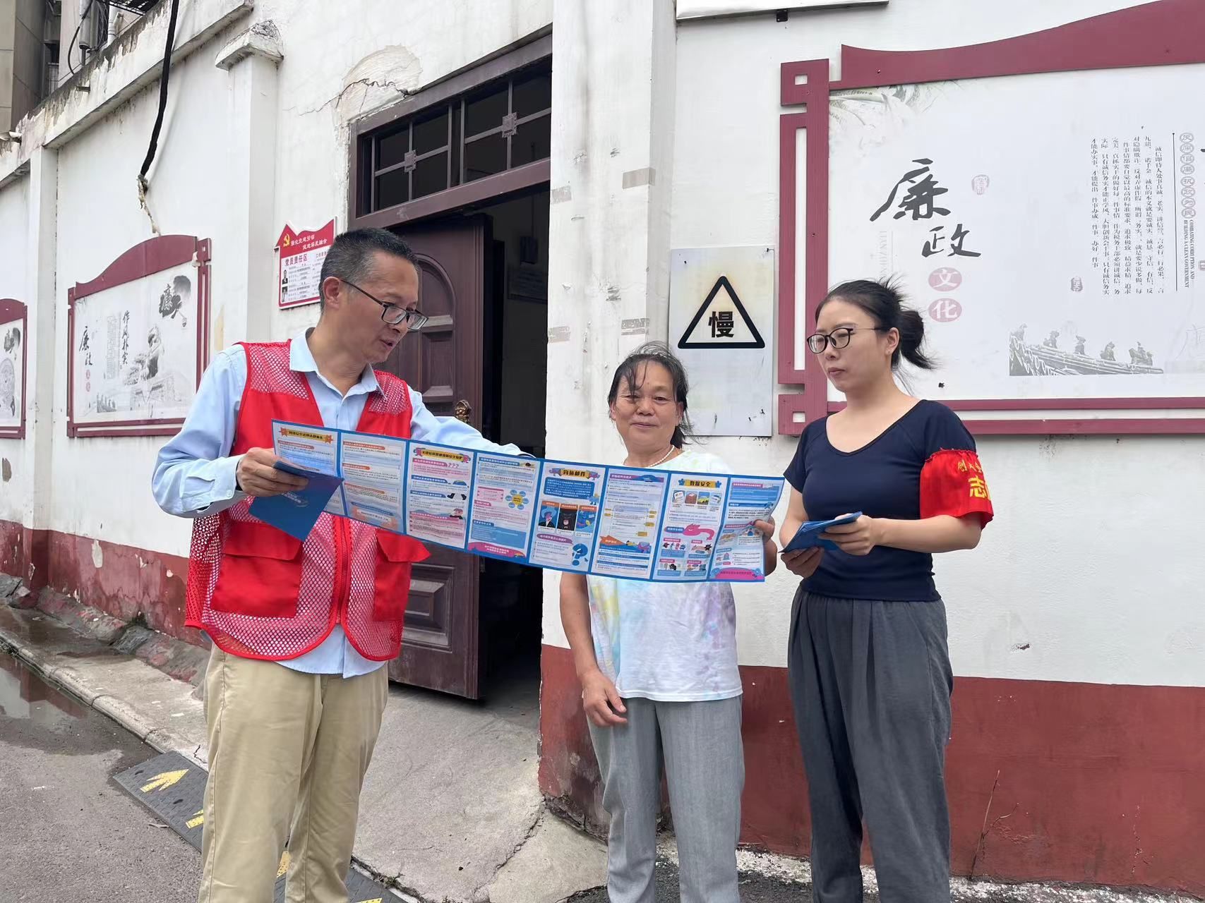 “共建网络安全 共享网络文明”,线下,社区组织辖区单位、学校及沿街经营户电子屏滚动播放网络安全宣传语。同时,社区志愿者还深入辖区传授防骗“锦囊”,告诫群众守护好“钱袋子”。向居民发放了“网络安全为人民 网络安全靠人民”网络安全宣传手册,结合典型案例,以通俗易懂的语言,面对面宣传宣讲网络安全知识。在当今数字化时代,网络安全至关重要。详细介绍了如何防范电信网络诈骗、保护个人信息、账号密码安全、病毒风险防范、上网安全、网上交易安全等。引导群众学习网络安全知识,并从我做起、远离风险,努力筑牢网络安全“防火墙”。