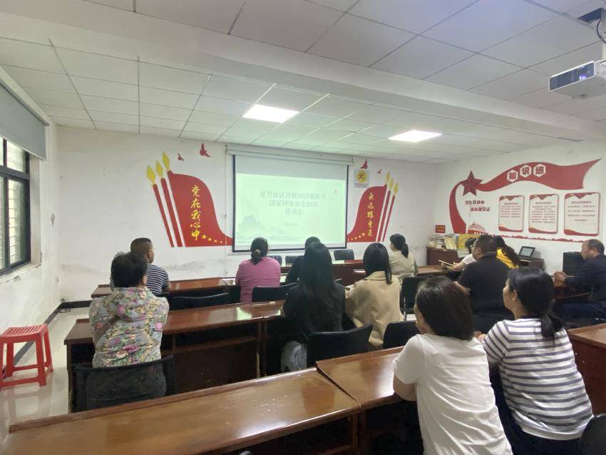 本网讯(通讯员周雯)在2025年国家网络安全宣传周期间,星月社区组织开展网络安全知识培训会。9月8日,樊城区人大代表、星月社区党委书记苏丽亲自主持并领衔授课,社区工作人员及辖区居民参与,切实将网络安全防护知识送到群众身边。
