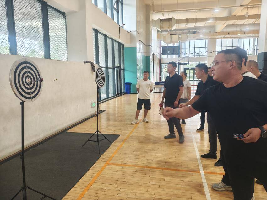运动会现场热闹非凡,居民们早早地来到活动现场,脸上洋溢着期待的笑容。本次运动会设置了丰富多彩的项目,既有考验团队协作的集体跳绳,也有展现个人技巧的投飞镖。在投飞镖项目中,参赛者们个个摩拳擦掌,全神贯注地瞄准靶心,每一次投掷都引来观众的阵阵喝彩。无论是经验丰富的老手,还是初次尝试的新手,都在这个项目中找到了乐趣,享受着运动带来的成就感。