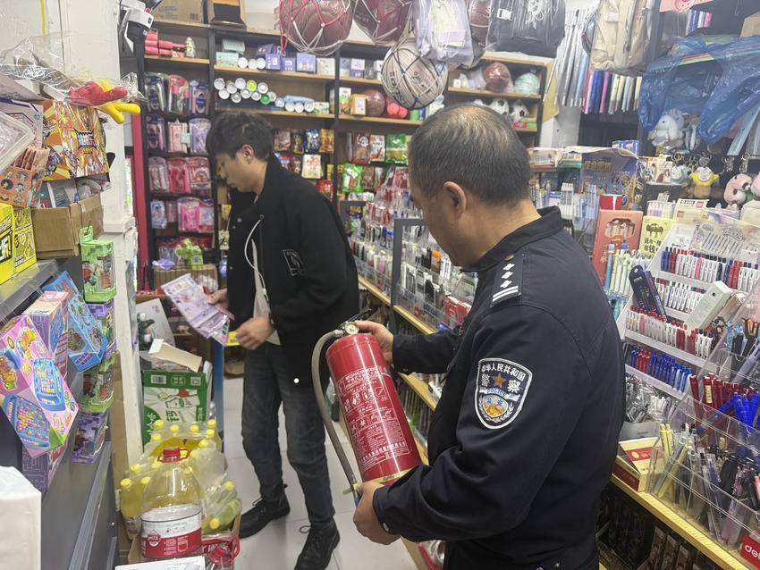 在沿街门面区域,志愿者与社区工作人员重点检查餐饮店、超市、快递点等场所。针对商铺普遍存在的消防器材过期、私拉乱接电线、货物遮挡消防栓等问题逐一登记,对部分存在“住宿、经营、仓储”三合一的违规场所现场下达整改通知,明确整改时限与要求。检查中,工作人员既当“检查员”也做“宣传员”,向商户讲解节日期间用火用电规范及初期火灾扑救技巧,引导商户主动落实安全主体责任 。