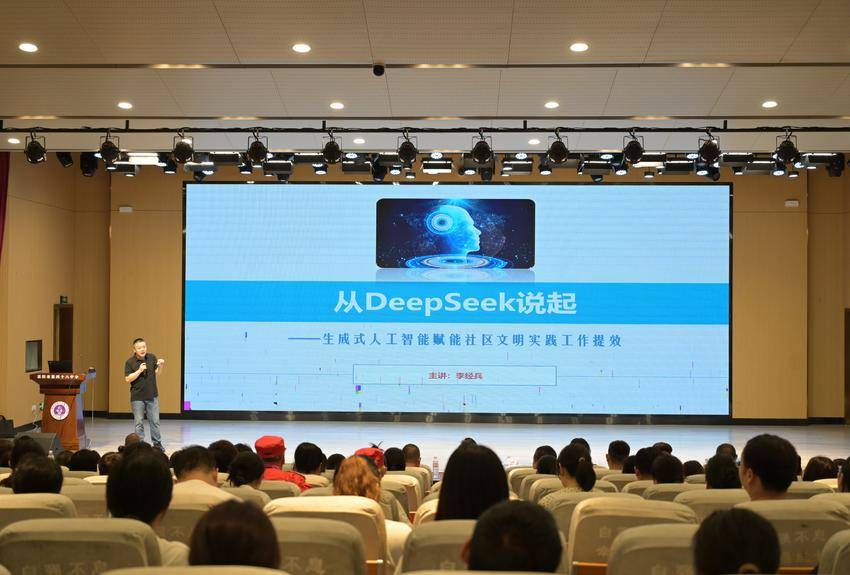 讲座内容紧扣主题,专家讲师李经兵深入浅出地介绍了DeepSeek人工智能技术的核心原理、广泛的应用场景,并重点剖析了其在新时代文明实践领域的巨大潜力。结合宣传引导、志愿服务优化、社区智慧治理等具体案例,李经兵生动展示了AI技术如何为实际工作赋能增效,并展望了其在未来文明实践中更为广阔的应用前景。现场气氛热烈,互动积极。与会人员结合自身工作实际,就AI技术的具体应用提出疑问,现场答疑解惑,并提供了具有操作性的实用建议。