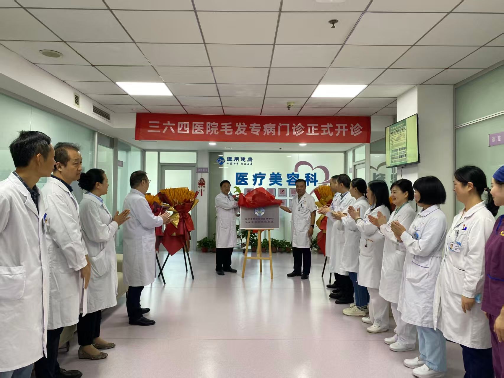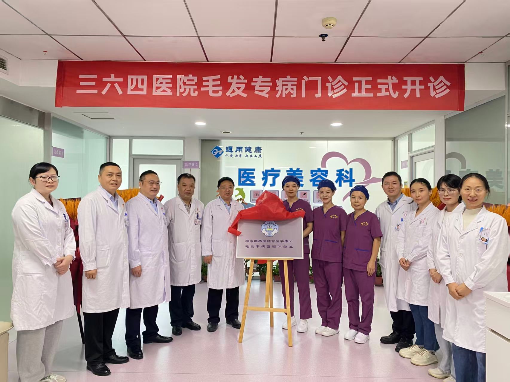 为满足广大患者对毛发健康诊疗的需求,提供更专业、精准的医疗服务,9月24日上午,三六四医院毛发专病门诊开诊仪式在医院二楼整形美容皮肤科举行。医院领导班子、相关职能部门负责人、各临床科室主任、护士长及整形美容皮肤科全体医护人员共同参加揭牌仪式。