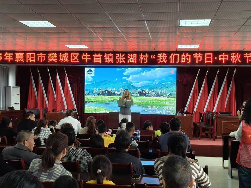 随后,《以法治为笔,共绘绿水青山》主题演讲登场。郭媛媛同学从司法、科技维度解读环保法治实践,让村民们看到了国家层面的生态治理决心。