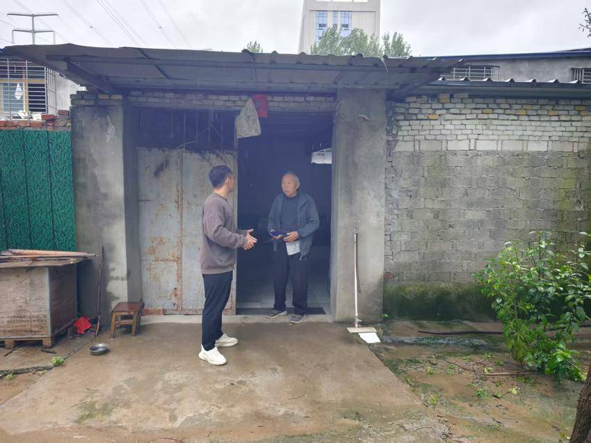 在走访过程中,社区工作人员化身“安全管家”,细致入微。他们认真检查居民房屋是否存在漏雨、墙体开裂、地基下沉等情况,并详细询问居民家中是否因降雨出现实际困难。除了排查安全隐患,工作人员还积极向居民宣传雨季安全常识,提醒大家注意防范雷电,及时清理阳台、窗台等处的杂物防止高空坠物,并密切关注天气预报,做好应急准备。