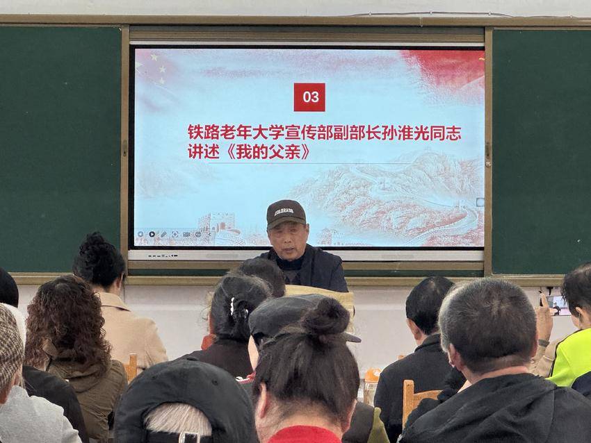 最后,铁路老年大学宣传部副部长孙淮光以《我的父亲》为题,结合生活细节讲述孙林泉战后坚守信仰、严于律己的故事,引发全场共鸣。铁路老年大学党委书记张艳秋同志总结指出,今天的党课是一场生动的党的光荣传统教育课,革命前辈孙林泉从抗日烽火战场到和平岁月,用忠诚与奉献书写了壮丽的人生篇章。他的故事,是一部可歌可泣的英雄史诗,激励着我们铭记历史。我们要传承这种精神,永远发扬光大。