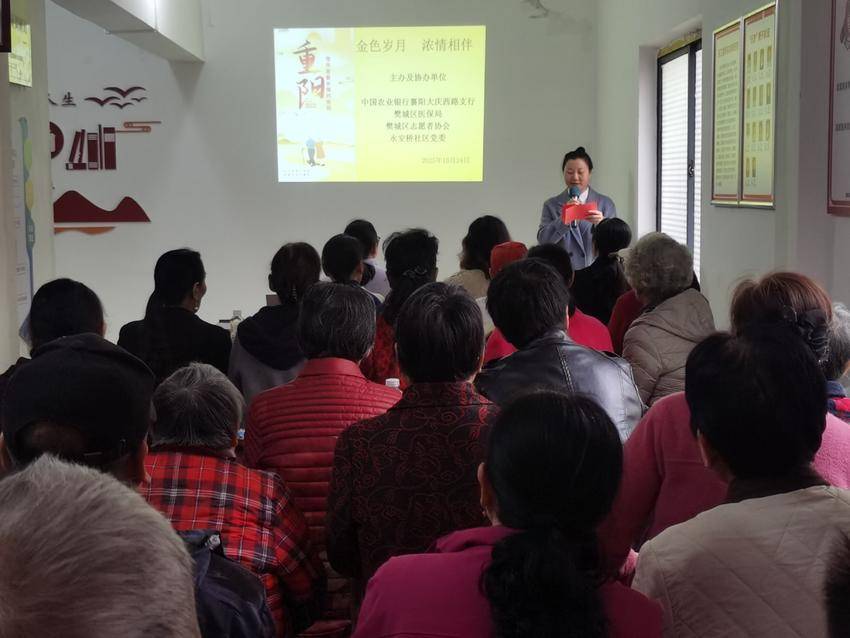 活动现场暖意融融,实用服务板块率先拉开序幕。樊城区医保局工作人员结合2026年医保新政,用通俗易懂的语言详细解读了城乡居民医保缴费标准、集中征缴期时限及缴费便捷渠道,重点针对老年人关心的保费减免条件、报销规则等问题逐一答疑,提醒大家避开报销“坑点”,确保医保政策红利精准直达。农业银行工作人员则聚焦老年群体金融安全,通过典型案例剖析,深入浅出讲解了冒充公检法、保健品推销等常见诈骗的作案手法,传授实用防诈技巧,守护老人“钱袋子”。同时,志愿者们向现场居民发放禁毒宣传手册,普及禁毒知识,进一步筑牢社区安全防线。