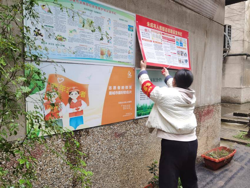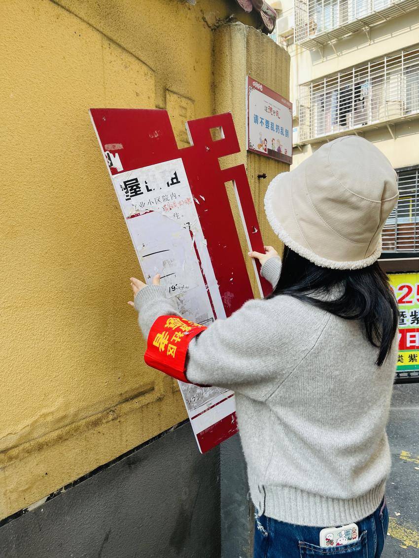 整治过程中,社区工作人员与志愿者们组成专项工作小组,对辖区内主次干道、小区楼院、公共活动场所等区域的各类展板进行了“拉网式”排查。他们仔细甄别,对画面褪色、纸张破损的展板进行登记;对宣传内容已过时效、不符合当前政策要求的过期展板逐一核对确认,后期将根据最新政策内容进行更换。在清理过程中,工作人员小心翼翼地对确定需要拆除的展板进行拆卸,确保操作安全,并对拆除后的遗留钉孔、胶渍等进行妥善处理,恢复墙面的整洁。