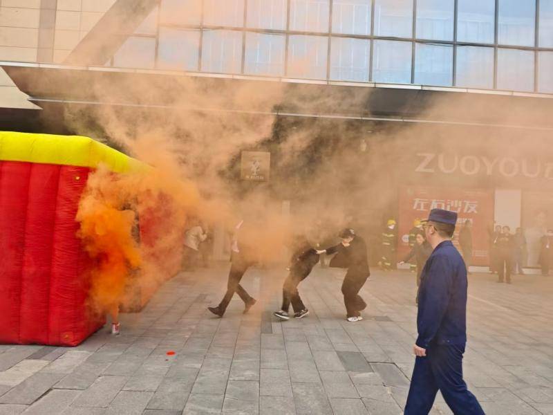 消防员结合大型商业综合体火灾特点,详细讲解火灾成因、预防要点、隐患排查、初期火灾扑救、疏散逃生技巧及消防器材使用方法等知识,并组织大家进行灭火实操演练,手把手指导大家掌握灭火器和消火栓使用要领。同时,消防员现场普及灭火器、应急照明灯、消防水带等常见消防产品真伪辨识方法,提醒大家要重视消防安全工作,强化消防演练和知识培训,深入开展消防安全隐患自查自改,切实消除消防安全隐患,维护公共消防安全。最后,消防员组织商场员工开展灭火实操、模拟烟道应急疏散演练体验等项目,全面提高消防安全意识、提升消防安全技能。